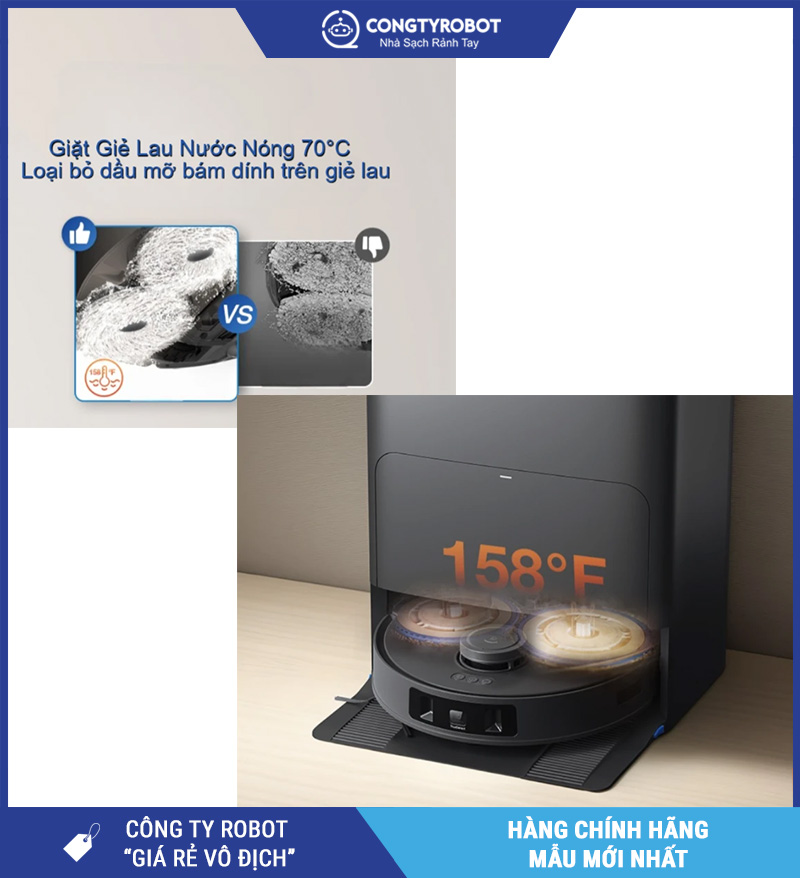 | Tự động giặt & sấy giẻ | Có – giặt bằng nước nóng 70°C, sấy khô khí nóng 45°C |