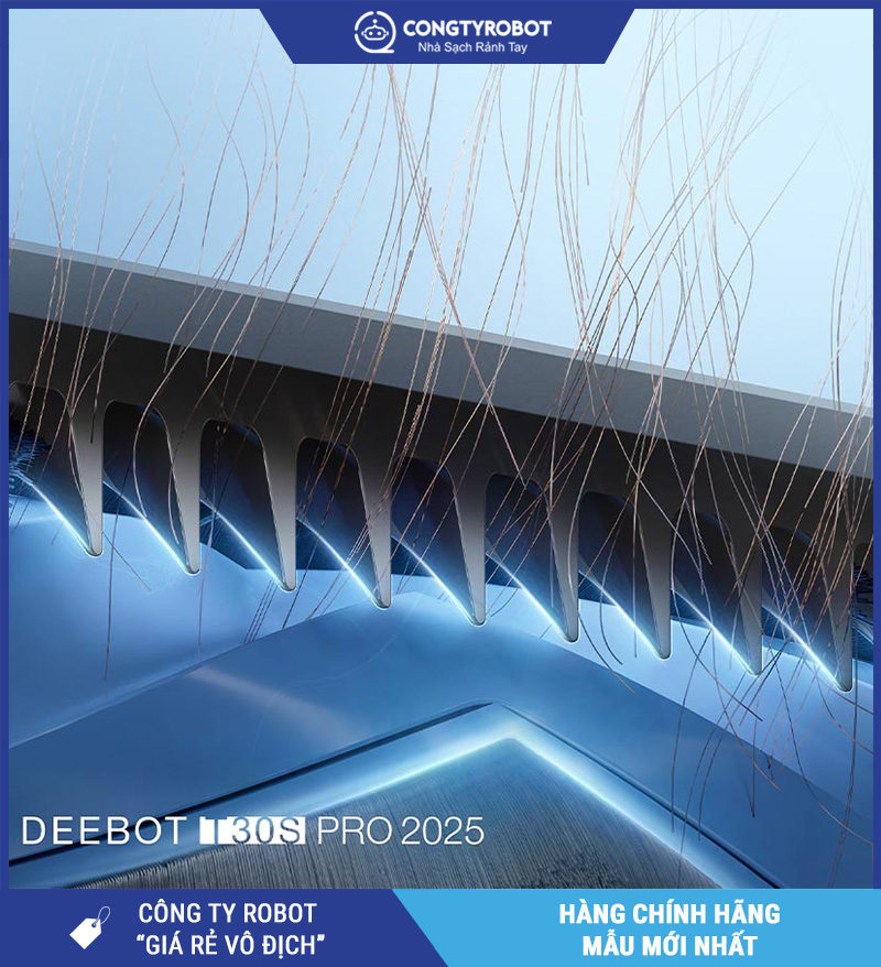 Deebot T30S Pro được trang bị công nghệ ZeroTangle™ hiện đại, giúp hạn chế tối đa tình trạng tóc, lông thú quấn vào chổi chính. Nhờ thiết kế chổi dạng chữ V và luồng gió xoáy tối ưu, robot có thể hút sạch tóc mà không bị rối, giảm thiểu việc tháo chổi vệ sinh thường xuyên.
