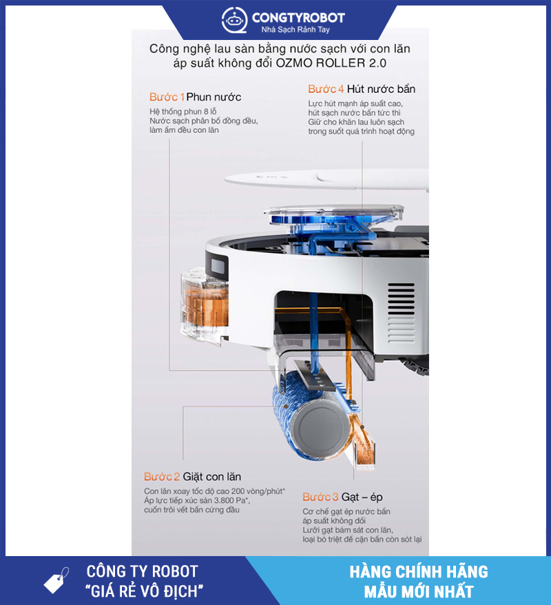 Công nghệ lau OZMO Roller 2.0 làm sạch bằng nước sạch liên tục