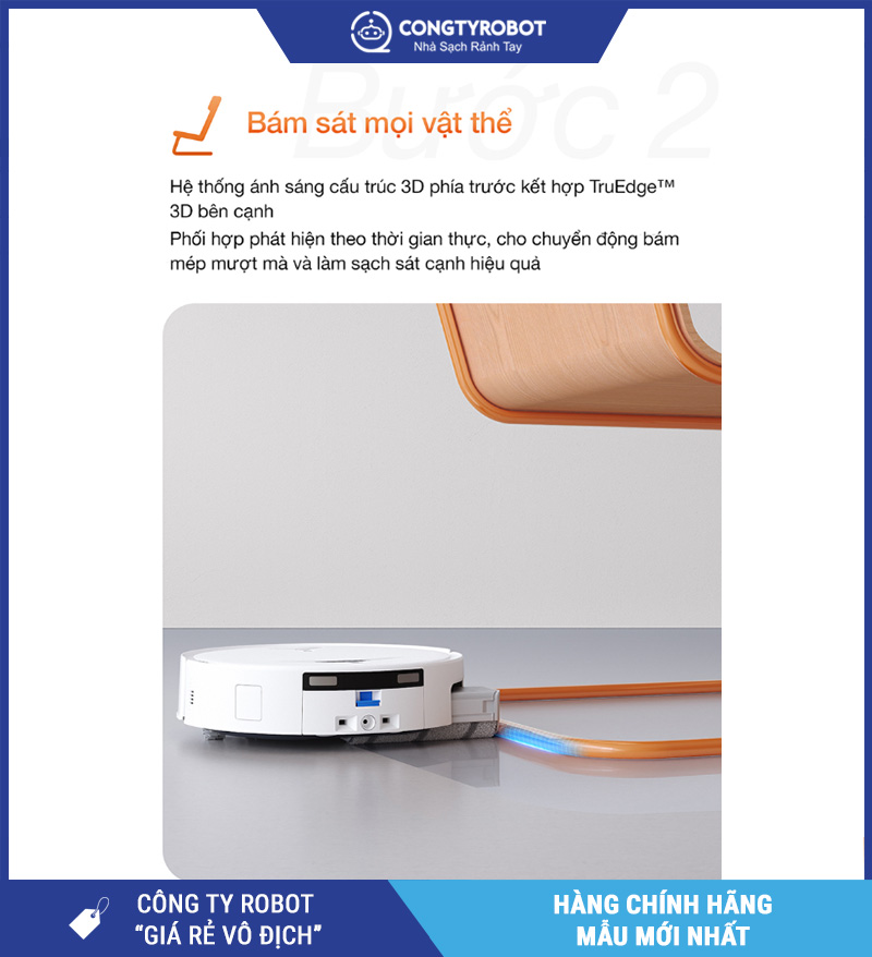 Bụi bám ở chân tường, mép tủ, cạnh sofa, chân bàn ghế là nơi robot thường bị bỏ sót. TruEdge™ 3.0 giúp tối ưu khả năng làm sạch sát mép, giảm “vùng chết” quanh viền tường và nội thất. Nhờ đó, sàn nhìn sạch hơn tổng thể và bạn ít phải lau dặm thủ công sau khi robot chạy.