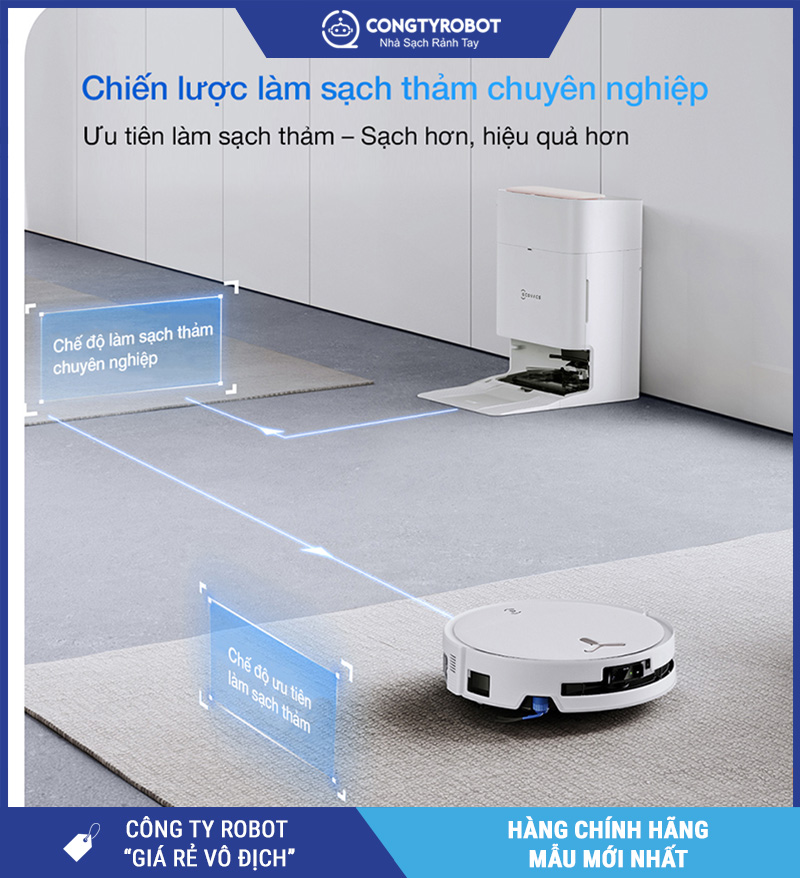 Ví dụ: phòng khách có thảm nỉ → robot ưu tiên hút mạnh trên thảm, sau đó lau sàn cứng xung quanh mà không làm ướt thảm.
