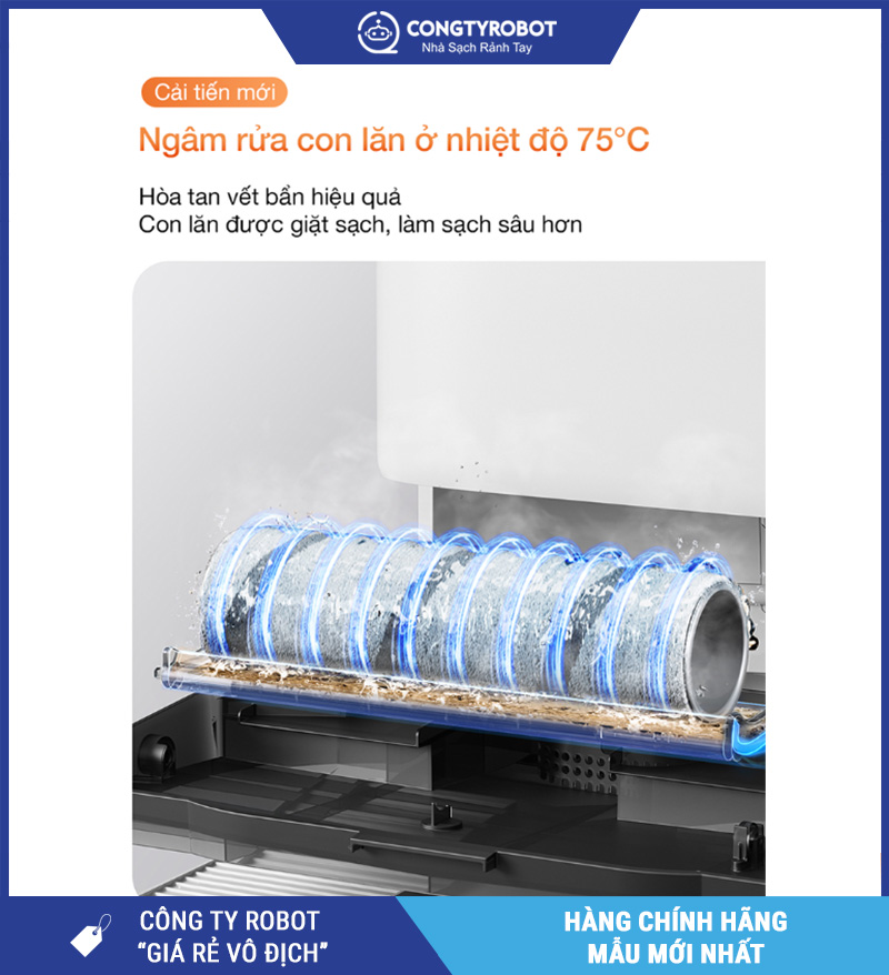 Giặt con lăn 75°C & sấy khô 63°C, làm sạch và khử khuẩn tối ưu