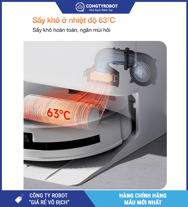 Con lăn lau nếu không được làm sạch/sấy khô đúng cách sẽ dễ hôi ẩm, bám cặn và ảnh hưởng chất lượng lau. T80S Omni hỗ trợ giặt nóng đến 75°C và sấy khô 63°C, giúp làm sạch con lăn kỹ hơn, giảm mùi và hạn chế vi khuẩn/nấm mốc trong điều kiện thời tiết ẩm.
