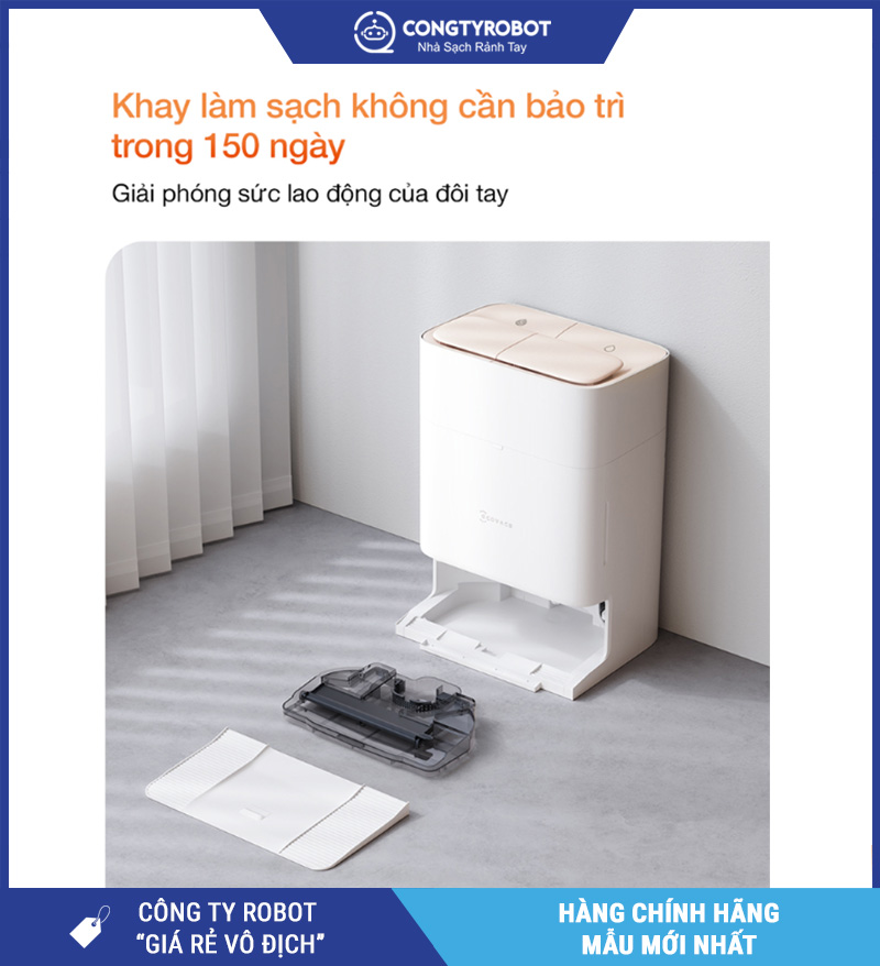 Thông điệp rảnh tay đến 150 ngày nhấn mạnh khả năng vận hành dài ngày với mức can thiệp tối thiểu (tùy theo tần suất dọn và mức bẩn thực tế). Giá trị cốt lõi là bạn ít phải chạm vào phần bẩn, giảm công chăm robot liên tục như các dòng không tự động hóa tốt.