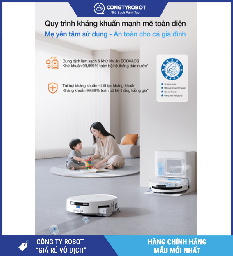 Ngoài việc làm sạch bụi bẩn nhìn thấy được, robot lau nhà “đáng tiền” còn nằm ở tiêu chuẩn vệ sinh lâu dài: hạn chế mùi hôi ẩm, hạn chế vi khuẩn/nấm mốc phát sinh ở các bộ phận thường xuyên tiếp xúc nước như con lăn, khay, đường dẫn nước. Với định hướng đó, hệ thống kháng khuẩn toàn diện giúp T80S Omni duy trì cảm giác sạch sẽ ổn định, đặc biệt phù hợp gia đình có trẻ nhỏ hoặc người nhạy cảm.