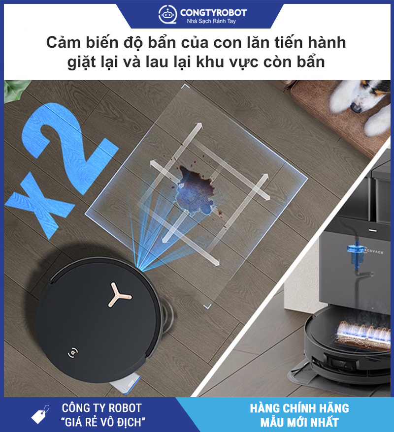 Tích hợp trí tuệ nhân tạo, robot phát hiện vết bẩn và tự động tăng lực hút/lau lại tại khu vực đó. Đảm bảo vết bẩn cứng đầu cũng được xử lý sạch sẽ.