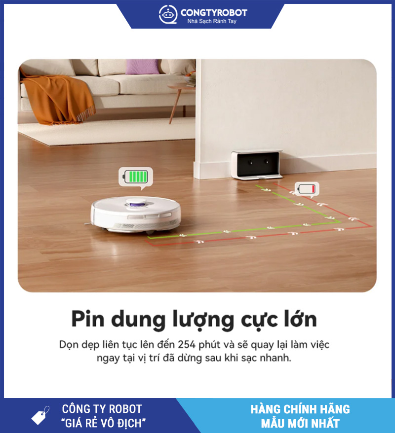 Về góc nhìn bán hàng, thay vì chỉ nhấn mạnh “pin lớn”, nên khai thác theo lợi ích người dùng: robot làm sạch được diện tích rộng, ít phải sạc giữa chừng và phù hợp hơn cho nhà nhiều khu vực.