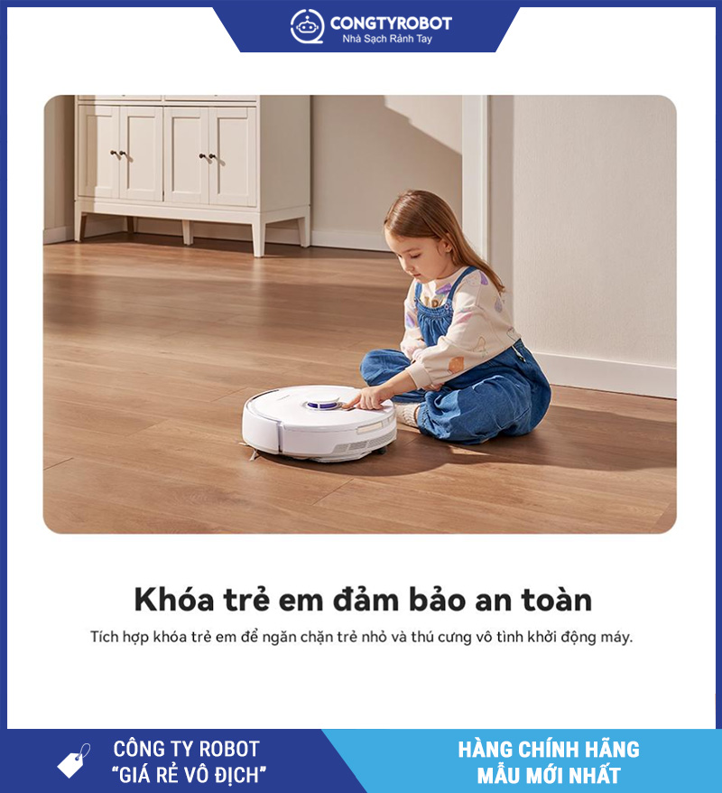 Đây là chi tiết nhỏ nhưng rất thực tế trong gia đình có trẻ em hoặc thú cưng hiếu động. Nó giúp tăng độ an tâm trong quá trình sử dụng hằng ngày, nhất là khi robot thường đặt ở khu vực sinh hoạt chung.