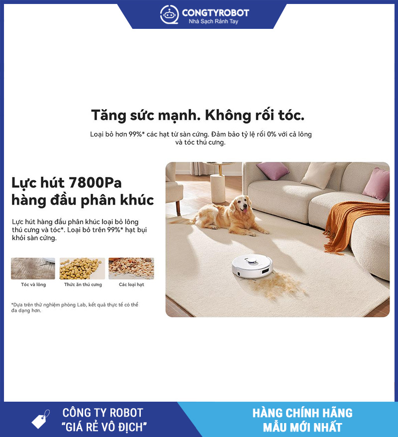 | Phù hợp bề mặt | Sàn cứng, thảm, nhà có lông thú / tóc dài |