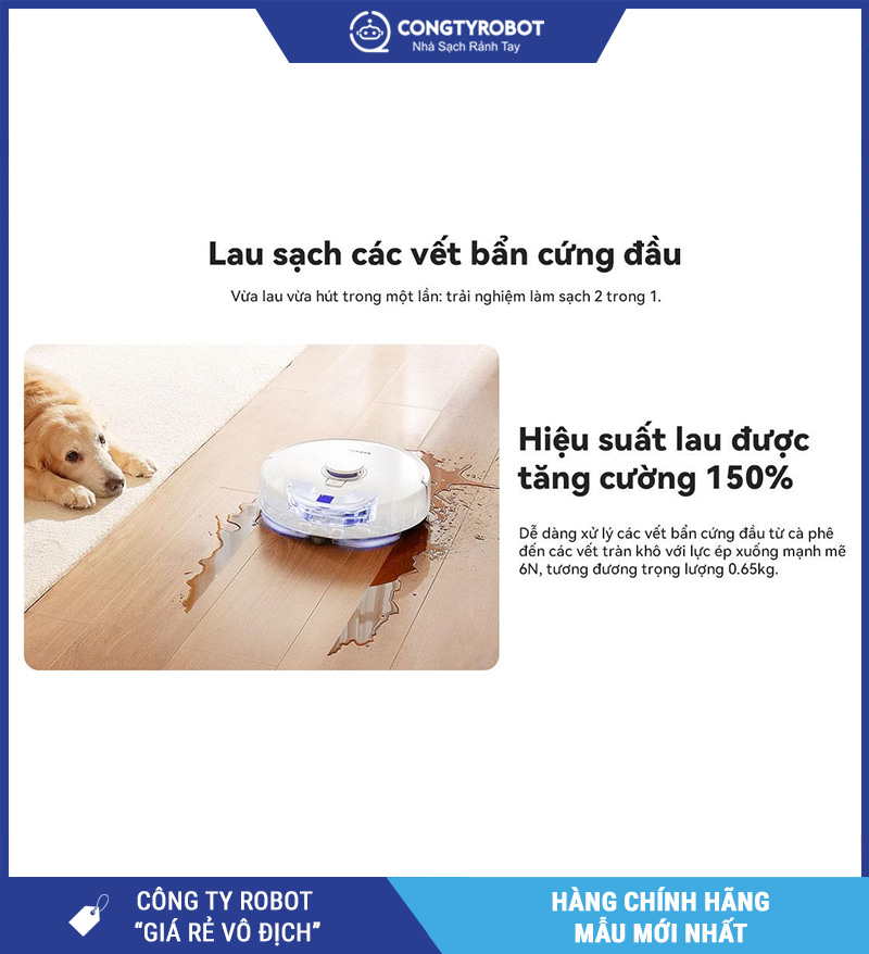 Điểm mạnh ở đây là robot không chỉ “đi qua cho có”, mà tạo lực ép đủ tốt để cải thiện hiệu quả lau thực tế. Với các khu vực như bếp, gần bàn ăn hoặc lối ra vào, tính năng này giúp bề mặt sàn sạch kỹ hơn và giảm công lau thủ công.