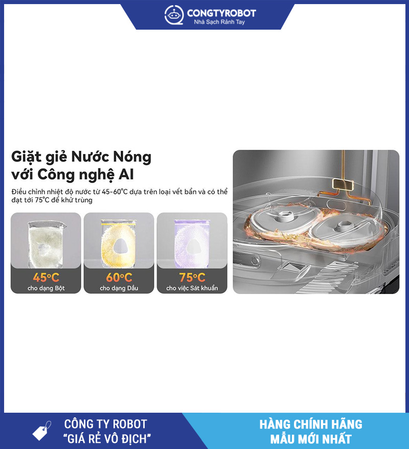 Một trong những tính năng cao cấp nhất của Narwal Freo Z Ultra là giặt giẻ bằng nước nóng thích ứng AI. Narwal cho biết trạm sạc có thể điều chỉnh nhiệt độ nước nóng theo mức độ bẩn của khăn lau, giúp làm sạch giẻ hiệu quả hơn, giảm mùi và hỗ trợ duy trì trạng thái vệ sinh tốt hơn cho hệ thống lau.