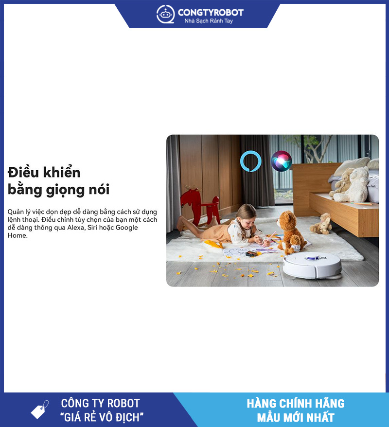 Đây là tính năng rất hợp với nhóm khách hàng yêu thích smart home. Chỉ cần một câu lệnh, robot có thể bắt đầu công việc dọn dẹp, giúp trải nghiệm sử dụng trở nên hiện đại và tiện hơn đáng kể.