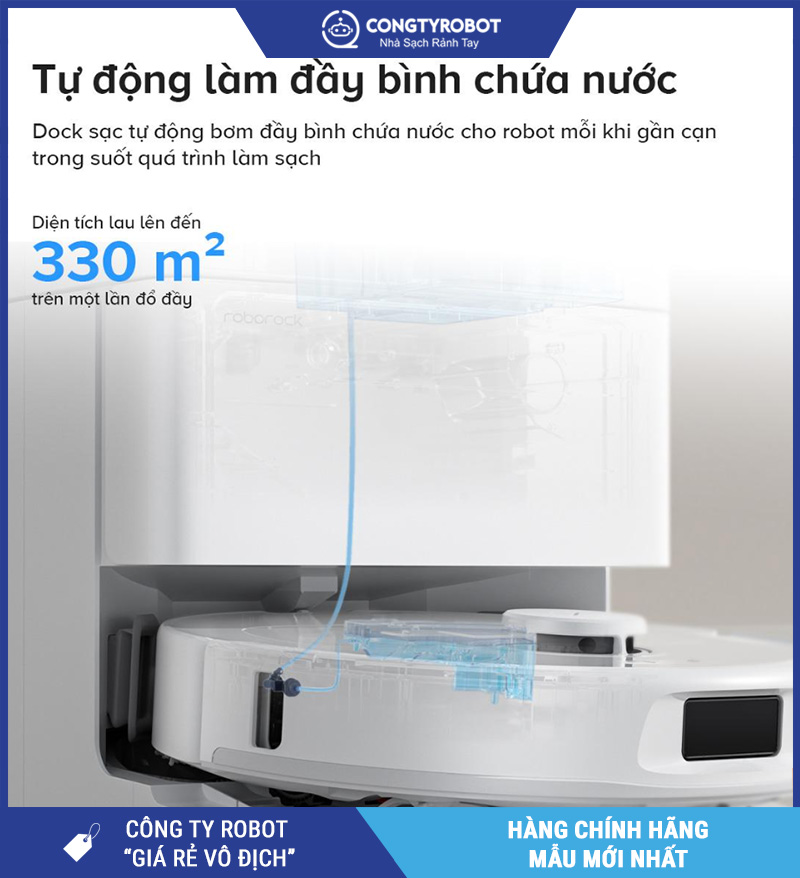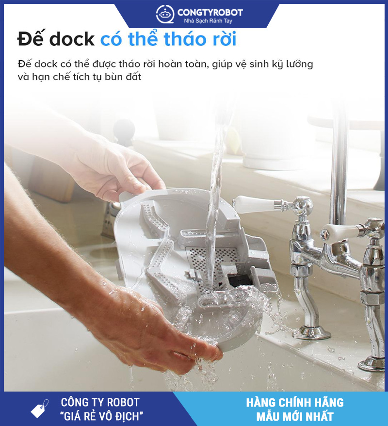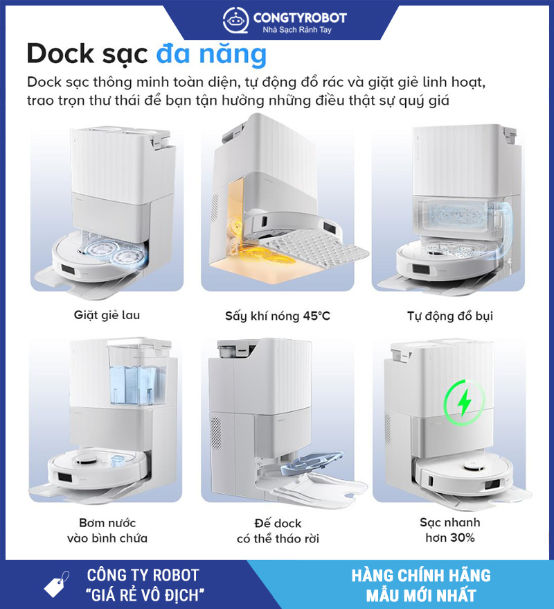 | Dock sạc | 5-trong-1: giặt – sấy – cấp nước – đổ bụi – tự làm sạch |