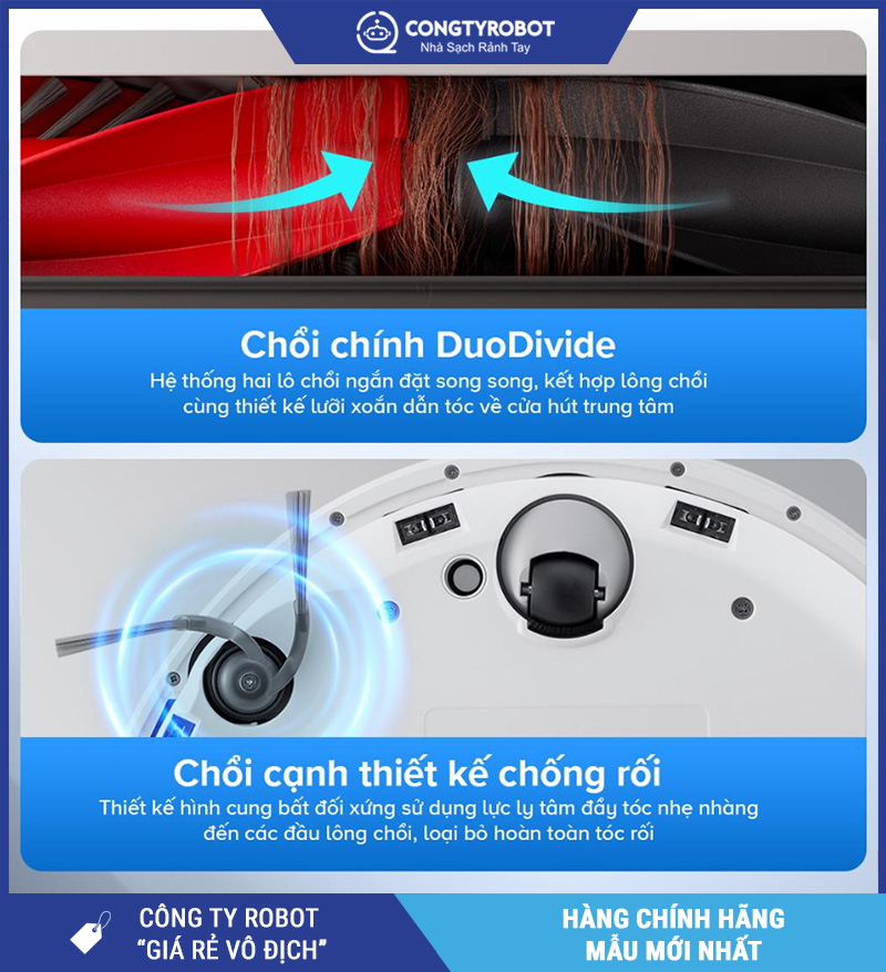 | Chổi chính | DuoDivide – chổi tách đôi chống rối hiệu quả |