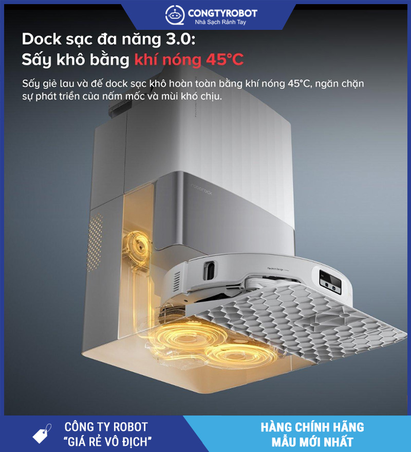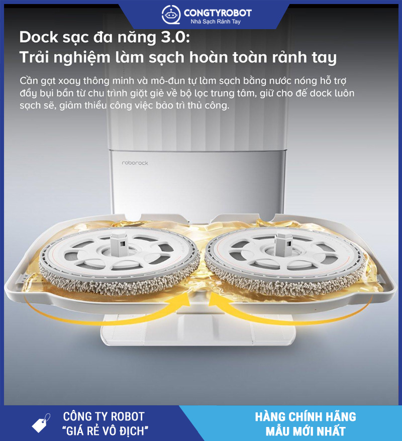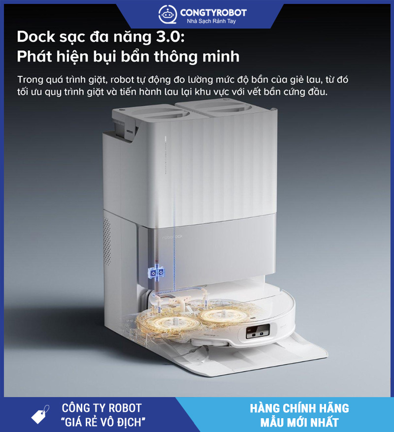 Dock thông minh hỗ trợ giặt giẻ bằng nước nóng, sấy khô, bổ sung nước và đổ rác tự động.
