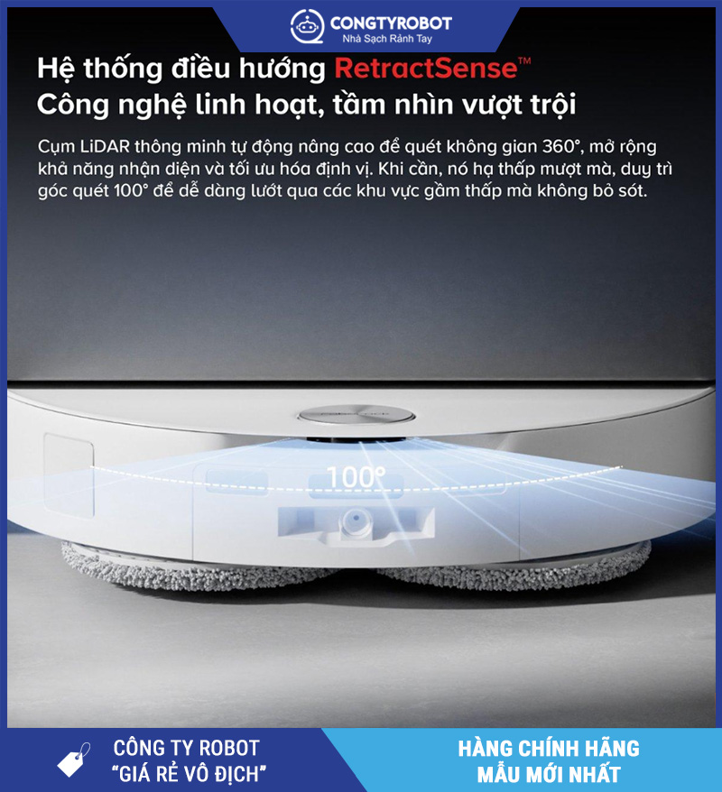 Kết hợp điều hướng LiDAR và cảm biến AI nâng cao cho khả năng lập bản đồ chi tiết, tránh vật cản cực kỳ thông minh.