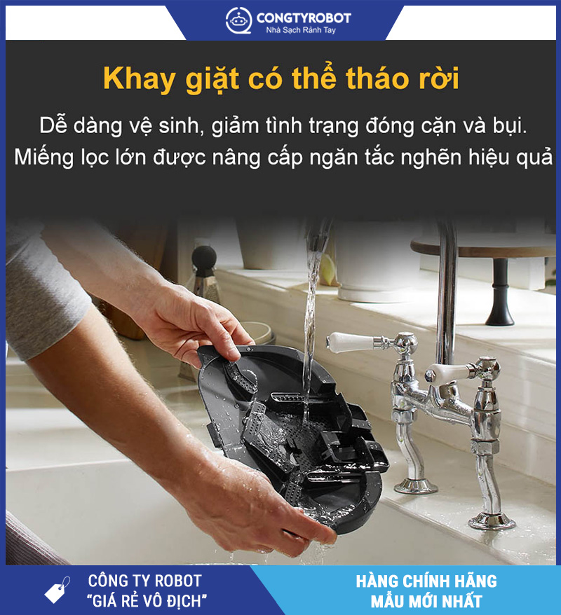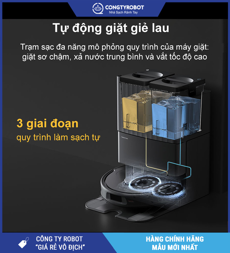 | Tự giặt & sấy giẻ lau | Nước nóng 60°C + sấy FlashDry |