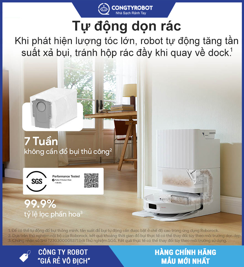 Tự động làm sạch bụi với hộp chứa bụi có thể lưu trữ lên đến 7 tuần, không cần đổ thường xuyên.