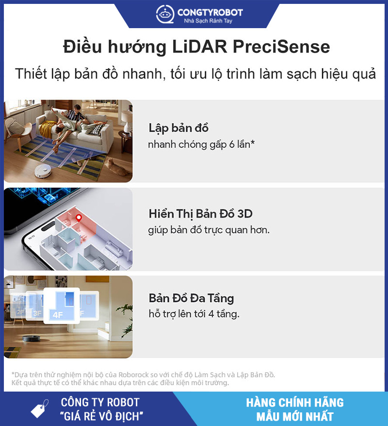 Robot tạo bản đồ 3D chi tiết của căn nhà, điều hướng và lên kế hoạch làm sạch hiệu quả.