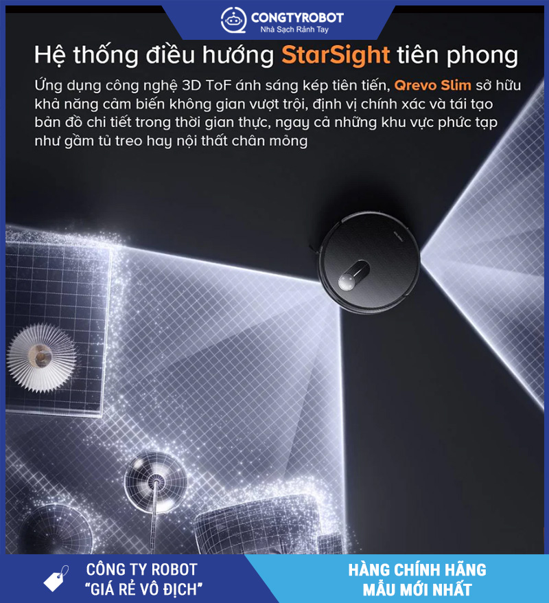 StarSight™ kết hợp hệ thống LiDAR ánh sáng kép, giúp robot định vị trong điều kiện ánh sáng phức tạp, bao gồm cả ánh sáng yếu và ban đêm.