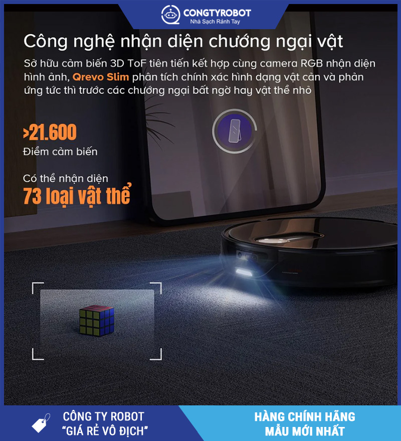 Nhận diện chính xác đồ vật như dép, dây điện, thú cưng... hạn chế mắc kẹt, tối ưu đường đi.