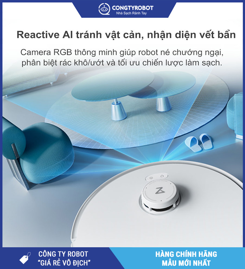 Camera RGB + cảm biến 3D + thuật toán AI cho phép robot nhận diện và phân loại chướng ngại vật: dép, dây điện, chân bàn, đồ chơi, vật nuôi...