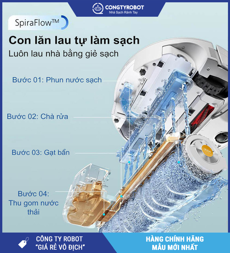Kết hợp với công nghệ SpiraFlow™ xoay đều 360°, con lăn dài còn giúp đảm bảo không bỏ sót bụi bẩn ở rìa tường, cạnh bàn, mang lại hiệu quả làm sạch nhanh – đều – mạnh mẽ hơn các robot sử dụng tấm lau phẳng truyền thống.