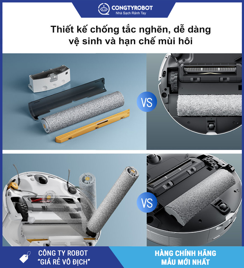 Một trong những nỗi lo phổ biến khi dùng robot lau nhà là khăn lau dễ bị bám tóc, tắc nghẽn, phát sinh mùi ẩm mốc sau vài ngày sử dụng. Roborock đã giải quyết triệt để vấn đề này trên Q Revo Curv2 Flow nhờ: