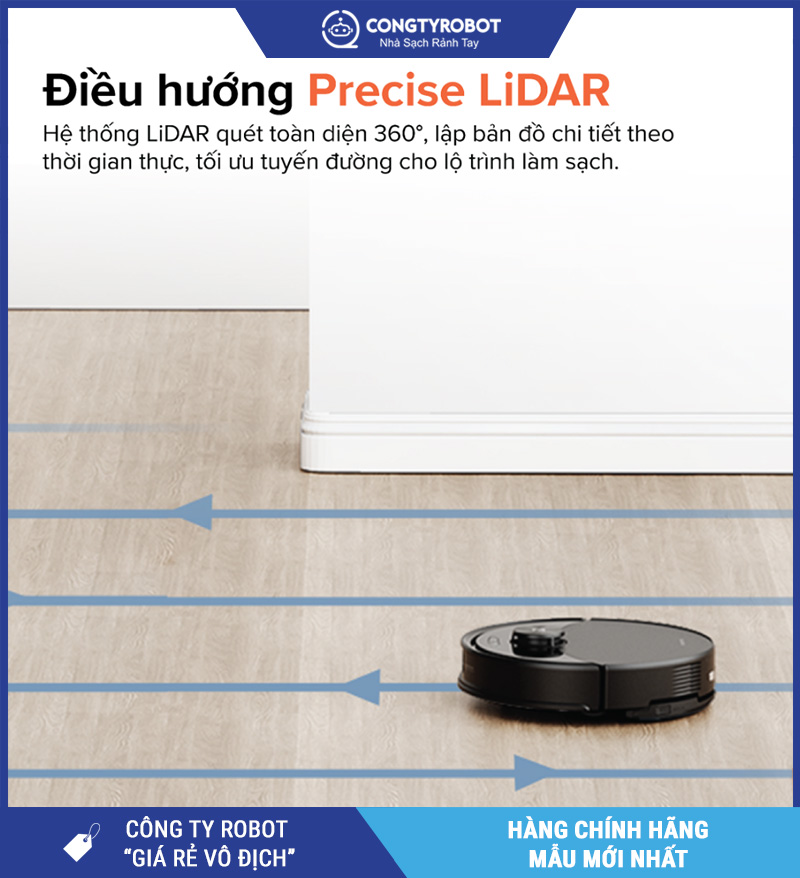 Sử dụng hệ thống LiDAR PreciSense, robot quét 360° không gian sống, tạo bản đồ chi tiết, phân chia phòng và lên kế hoạch di chuyển tối ưu. Giúp tiết kiệm thời gian và không bỏ sót bất kỳ khu vực nào.