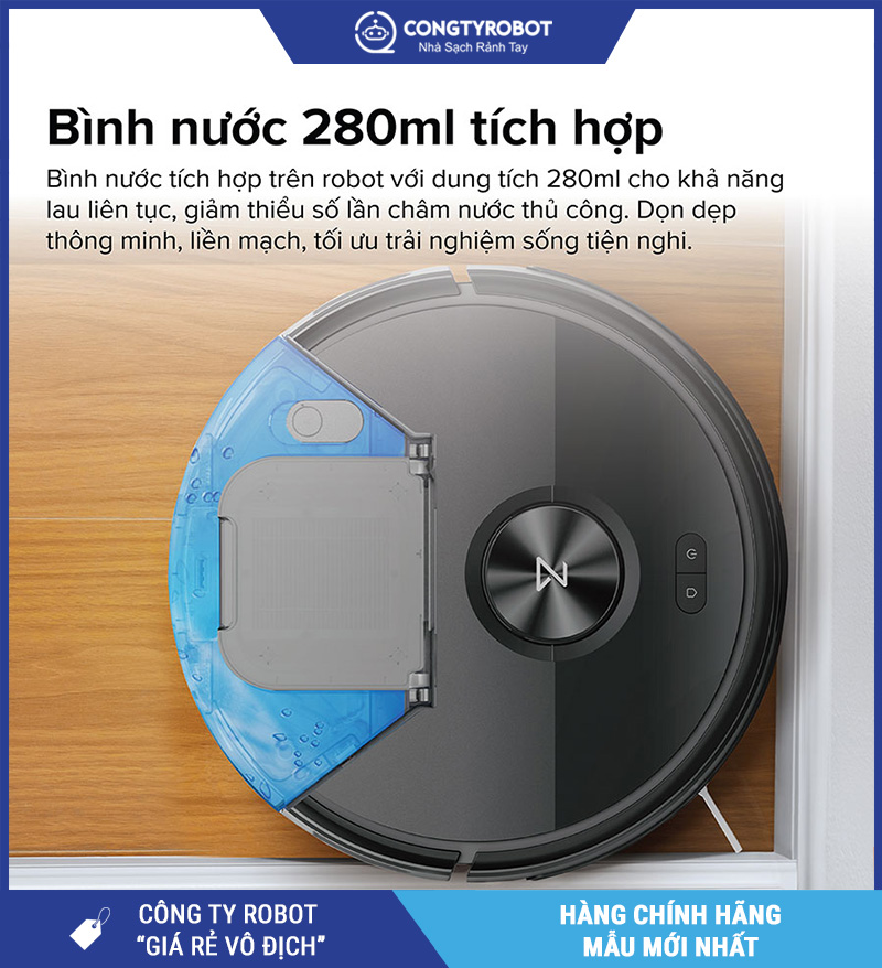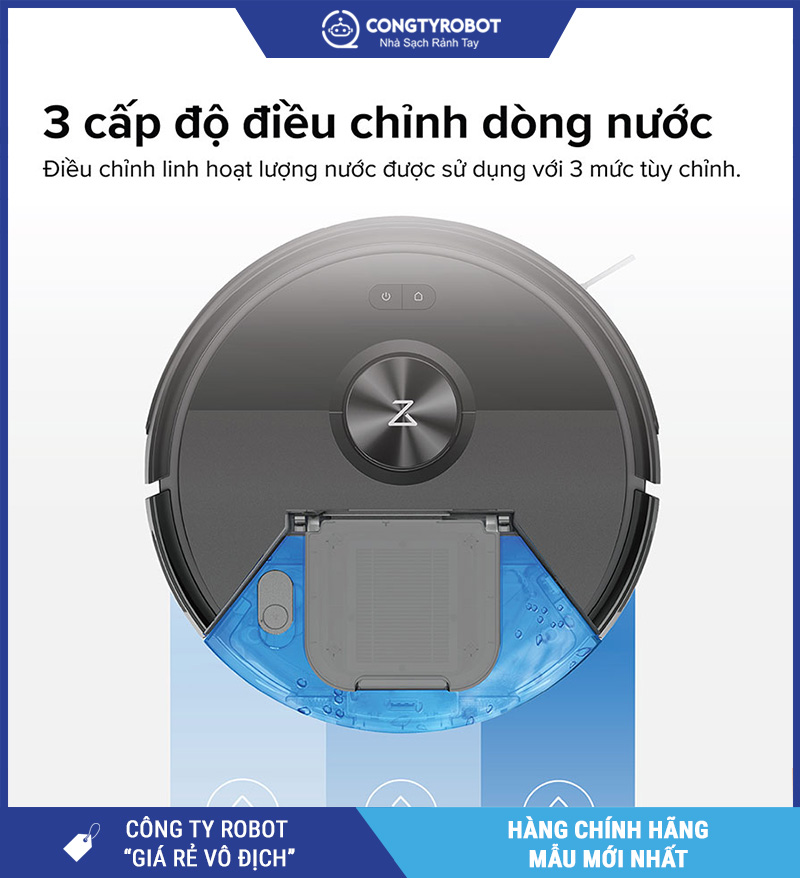 Bạn có thể lựa chọn 3 cấp độ nước tương ứng với các loại sàn: ít nước cho sàn gỗ, trung bình cho sàn đá và nhiều nước cho khu vực bẩn hơn. Giúp robot làm sạch hiệu quả mà không làm hư hỏng bề mặt sàn.