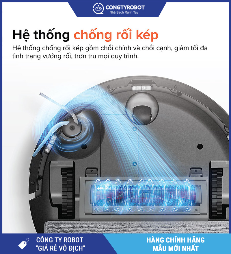 Hệ thống chổi chính và chổi cạnh thiết kế đặc biệt giúp chống rối hiệu quả, hạn chế kẹt tóc và dễ dàng tháo lắp vệ sinh. Giữ hiệu suất dọn dẹp luôn ổn định và tiết kiệm thời gian bảo trì.