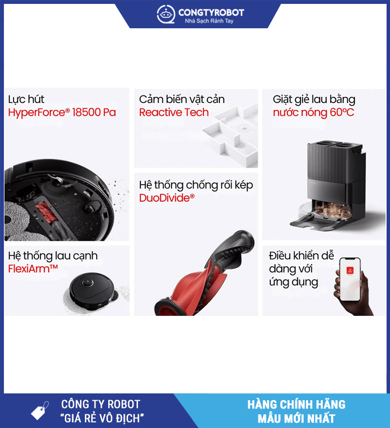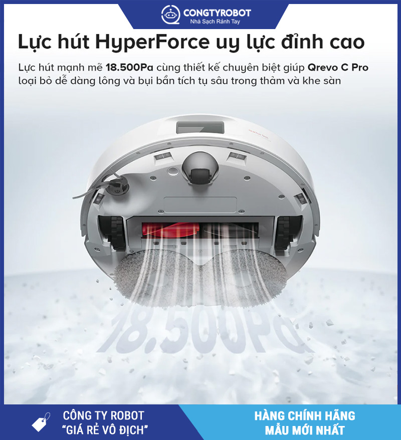 Lực hút HyperForce 18.500Pa mạnh mẽ, xử lý mọi bụi bẩn