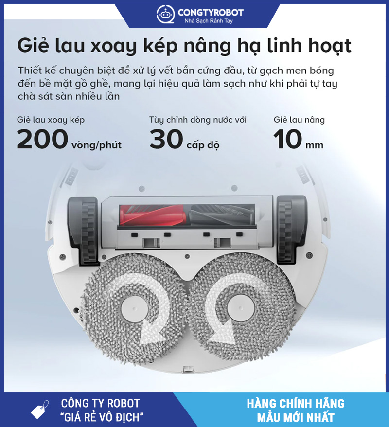 Hệ thống lau xoay kép nâng hạ thông minh, sạch sâu và bảo vệ thảm