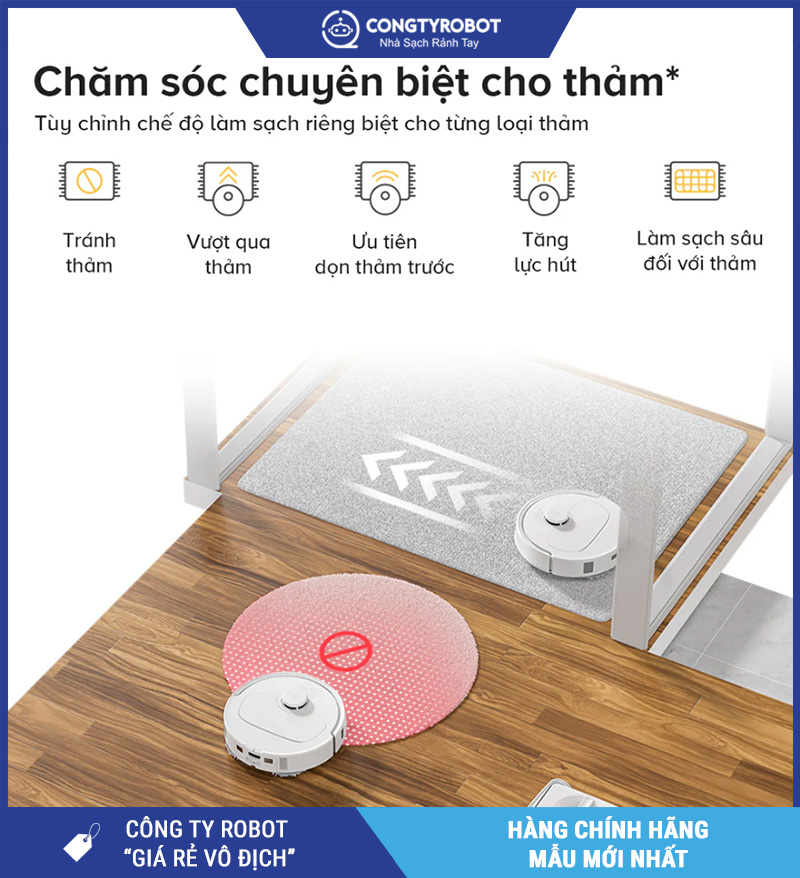 Nhà có thảm: bật chế độ ưu tiên thảm để robot tự tối ưu khi gặp thảm.