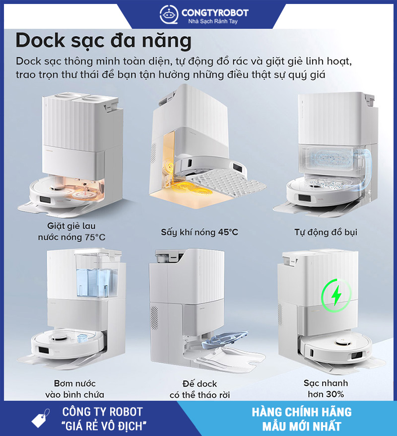 Dock sạc đa năng làm sạch hoàn toàn tự động