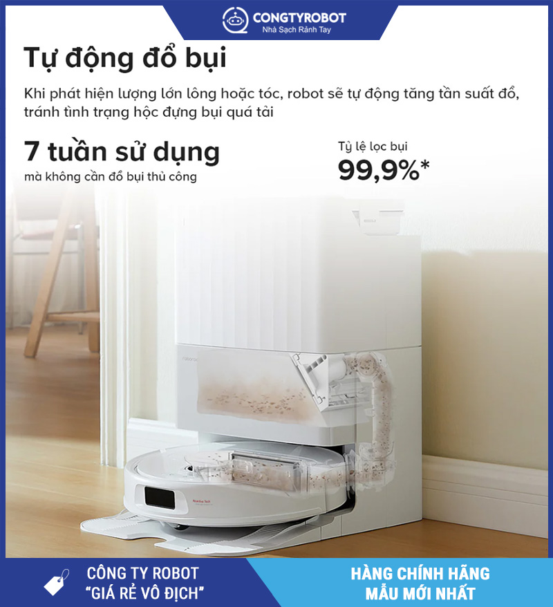 Gia đình bận rộn chạy robot mỗi ngày → dock sẽ “lo phần hậu cần”, bạn chỉ cần châm nước/đổ nước bẩn theo chu kỳ thay vì xử lý sau từng lần chạy.