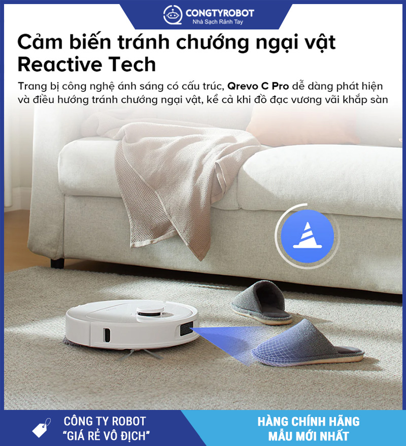 Nhà Việt thường có nhiều vật nhỏ: dép, dây sạc, đồ chơi trẻ em, bát ăn thú cưng… Nếu robot né kém sẽ dễ kẹt hoặc va chạm. Reactive Tech giúp robot phát hiện và tránh vật cản tốt hơn, nhờ đó: