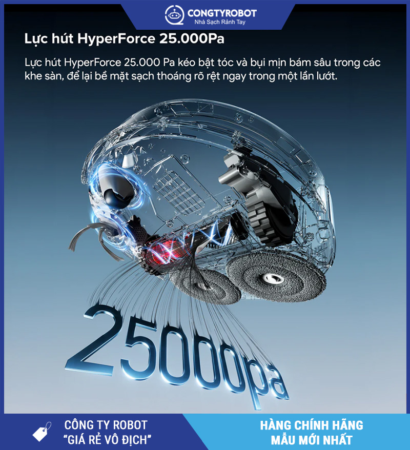 Lực hút HyperForce 25.000Pa – Làm sạch mạnh mẽ chỉ sau một lần di chuyển
