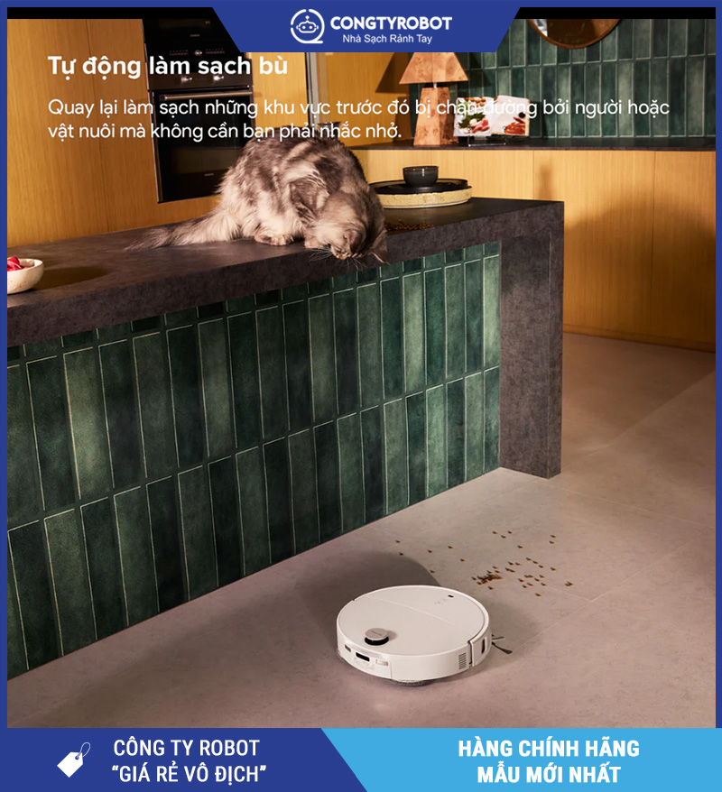 Tính năng này rất hữu ích ở những vị trí dễ tích tụ dầu mỡ hoặc bụi bẩn như khu vực bếp, bàn ăn, lối ra vào hay nơi thú cưng thường nằm. Thay vì lau đồng đều một cách máy móc, robot có thể ưu tiên xử lý kỹ hơn ở những điểm cần làm sạch sâu.