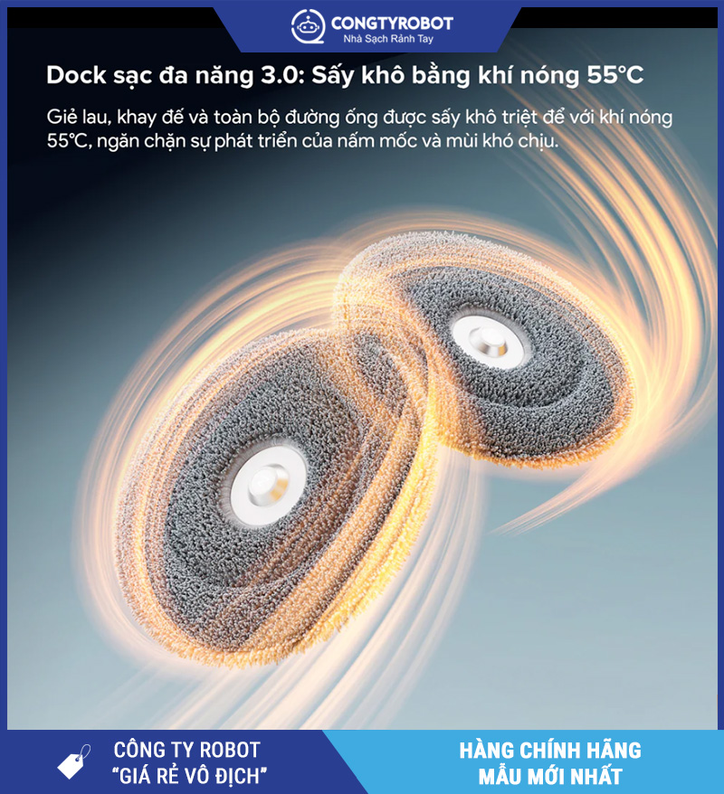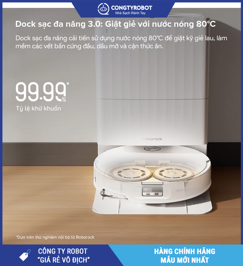 Robot sử dụng nước nóng lên đến 80°C để làm sạch giẻ lau, giúp: