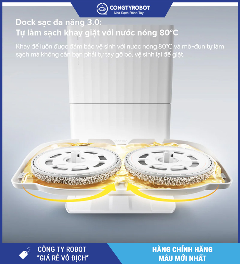Không chỉ làm sạch giẻ lau, Dock 3.0 còn có khả năng tự làm sạch khay giặt bằng nước nóng 80°C, giúp: