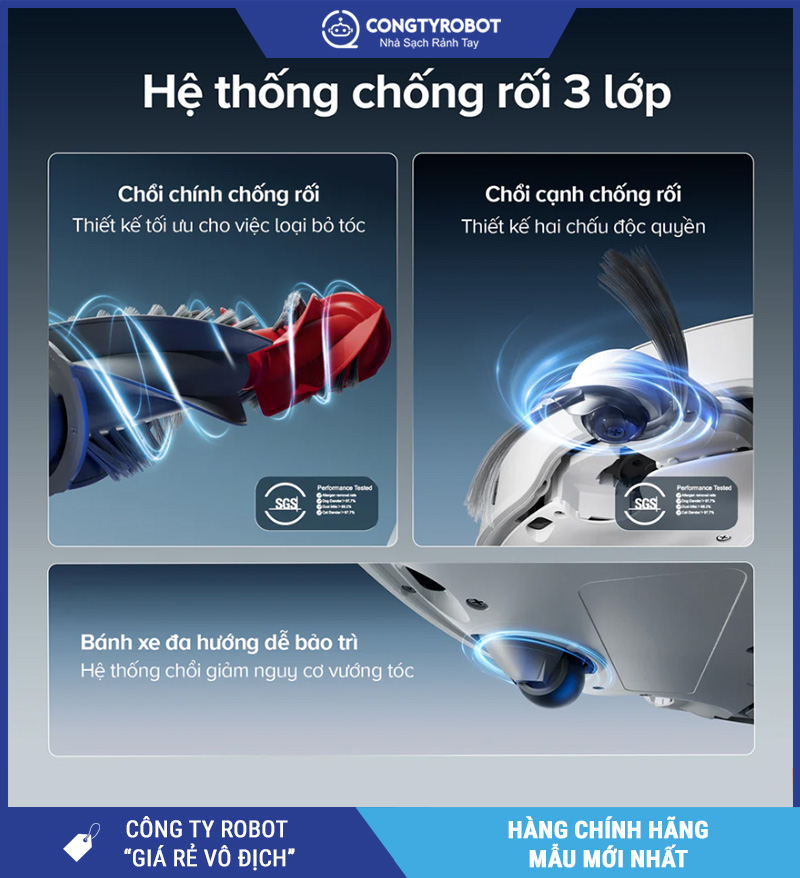 Điểm này đặc biệt phù hợp với gia đình có người tóc dài hoặc nuôi chó mèo. Khi robot ít bị quấn tóc hơn, hiệu suất làm sạch sẽ ổn định hơn, đồng thời người dùng cũng tiết kiệm đáng kể thời gian vệ sinh chổi và bảo trì thiết bị.