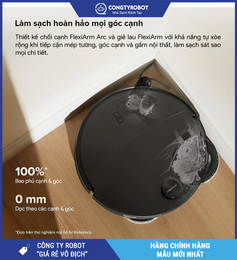 Roborock công bố khả năng bao phủ cạnh và góc 100% trong thử nghiệm nội bộ, đồng thời nhấn mạnh khả năng làm sạch dọc theo mép ở mức 0 mm. Về trải nghiệm sử dụng, điều này giúp sàn nhà nhìn sạch hoàn thiện hơn, đặc biệt ở những vị trí vốn rất dễ đọng bụi như chân tường, góc bếp hay xung quanh chân bàn ghế.