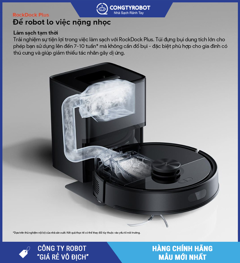 | Trạm sạc | RockDock Plus (tự động gom bụi) |
