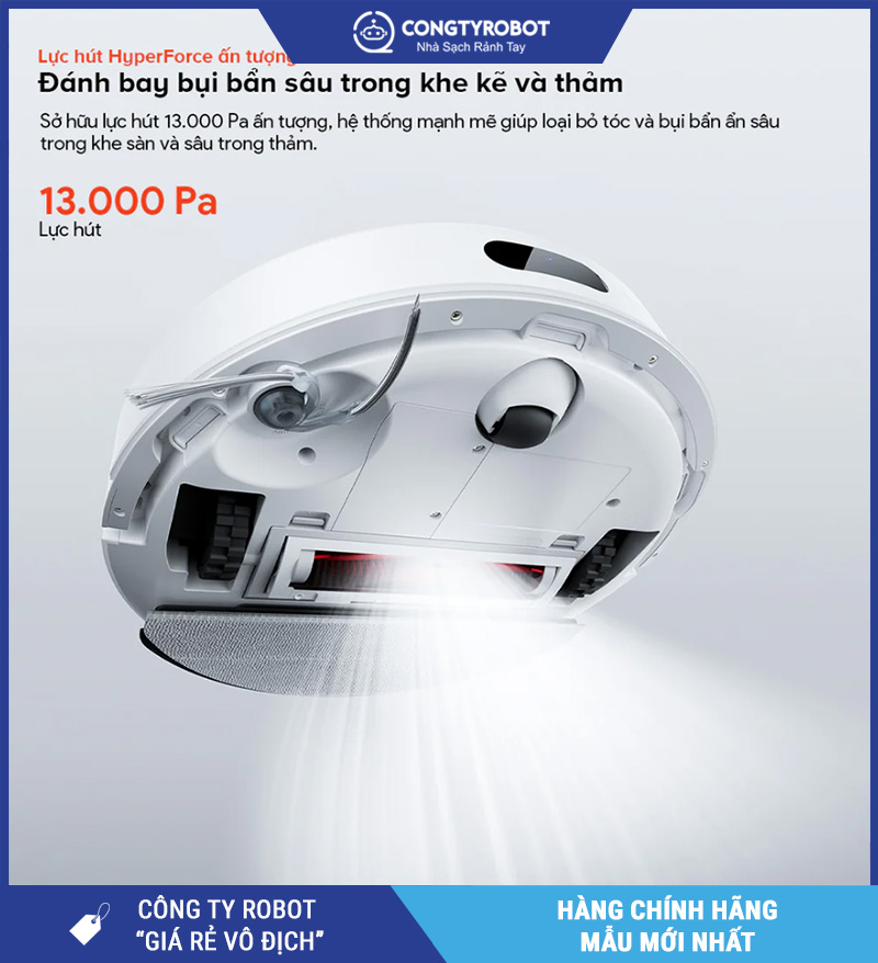 Lực hút HyperForce 13.000Pa – Làm sạch sâu từ sàn cứng đến thảm