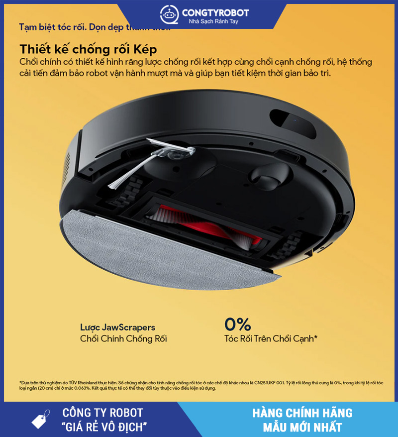 Khi chổi ít bị rối hơn, robot sẽ duy trì hiệu quả làm sạch ổn định hơn và giảm đáng kể công bảo trì thủ công. Điều này đặc biệt hữu ích với gia đình có thành viên tóc dài hoặc nuôi chó mèo trong nhà. Trên thực tế, một chiếc robot càng ít phải tháo chổi để gỡ tóc thì trải nghiệm sử dụng càng thoải mái và lâu dài hơn.