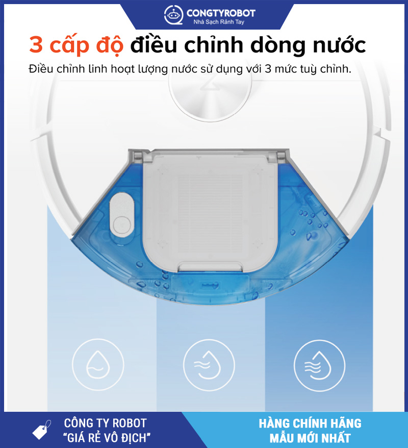 Q7 TF hỗ trợ tuỳ chỉnh lượng nước theo 3 cấp độ, phù hợp với từng loại bề mặt: