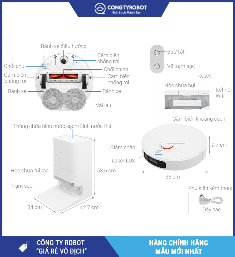 | Loại sản phẩm | Robot hút bụi lau nhà thông minh kèm trạm đa năng |