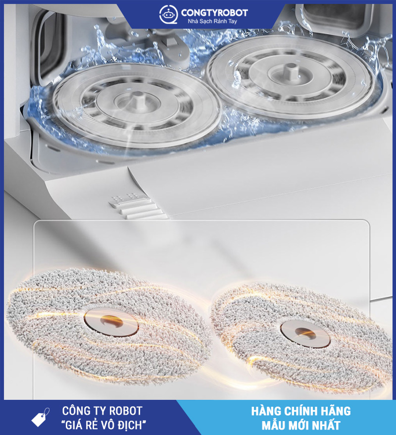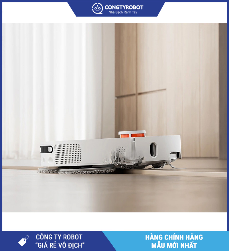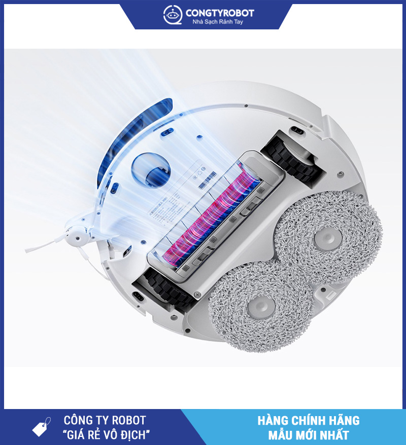 Máy được cải tiến cả về chổi quét phụ và hệ thống khăn lau, giúp tăng diện tích làm sạch và tối ưu hiệu quả thu gom bụi bẩn, đặc biệt ở các khu vực sát cạnh tường và góc khuất.