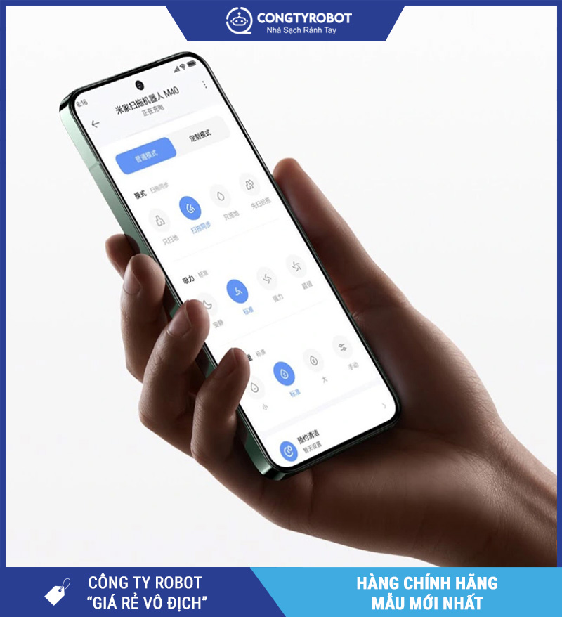 Người dùng có thể dễ dàng điều khiển Xiaomi Mijia M40 thông qua ứng dụng Mi Home, thiết lập lịch trình làm sạch, khu vực cấm và theo dõi trạng thái hoạt động của robot.